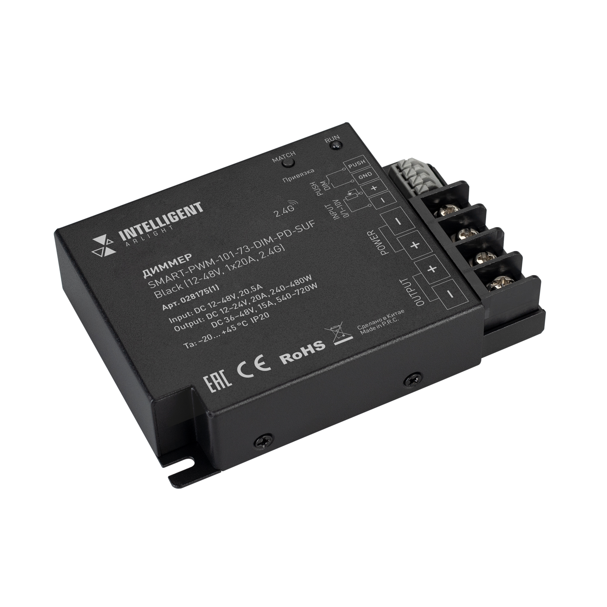 INTELLIGENT ARLIGHT Диммер SMART-PWM-101-73-DIM-PD-SUF Black (12-48V, 1x20A, 2.4G) (IARL, IP20 Металл, 5 лет) 028175(1) в Омске