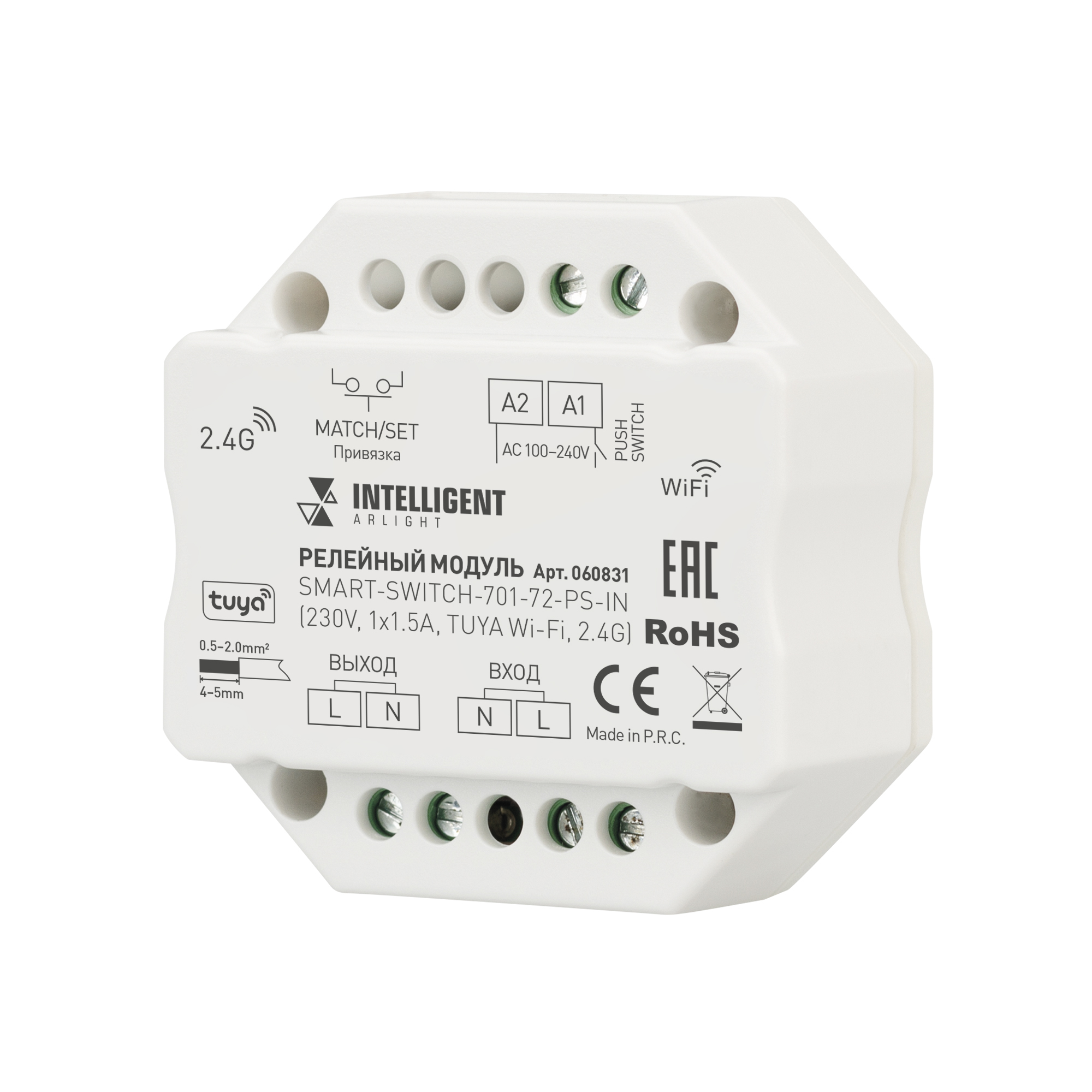 INTELLIGENT ARLIGHT Релейный модуль SMART-SWITCH-701-72-PS-IN (230V, 1x1.5A, TUYA Wi-Fi, 2.4G) (IARL, IP20 Пластик, 5 лет) 060831 в Омске