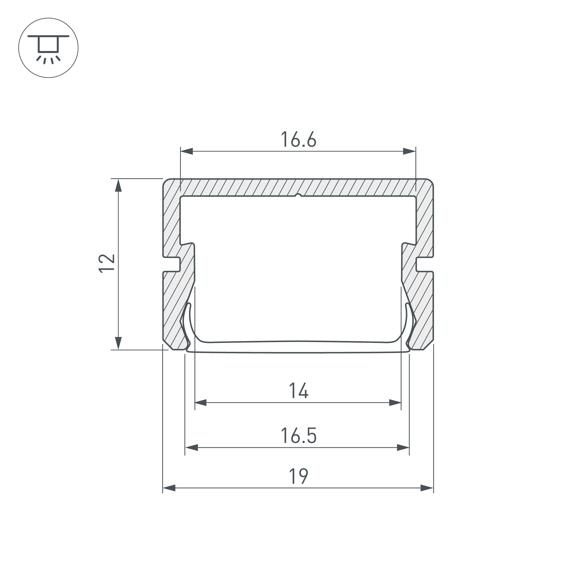 Расширенная площадка для лент в оболочке до 15мм. Класс пылевлагозащиты – IP67 (при соблюдении технологии герметизации). Габаритные размеры (L×W×H): 3000x19x12 мм. Ширина площадки для ленты 16,6 мм. Экраны, заглушки и другие аксессуары приобретаются отдельно. Цена за 1 метр.